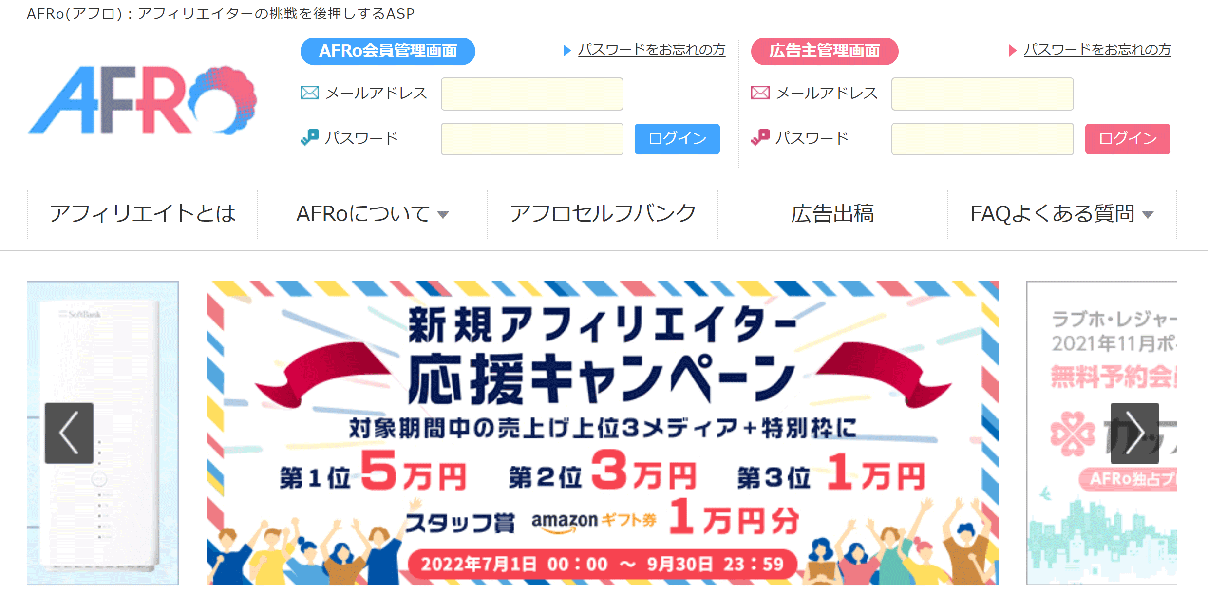 大手のASPとして知られているafbは、777円から報酬を振り込んでもらうことができる点やセルフバックの仕組みを取っている点などが特徴のASPです。