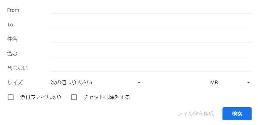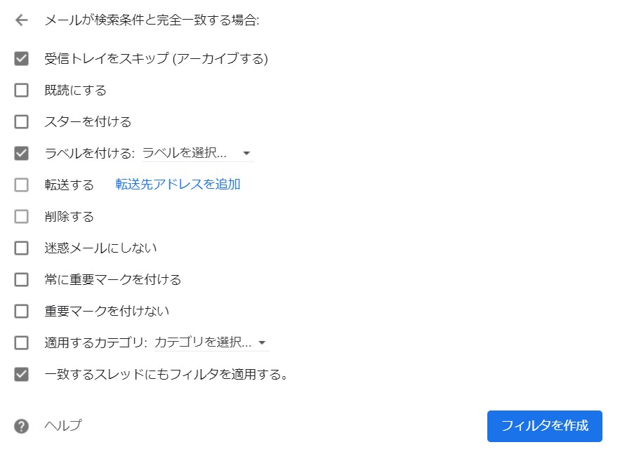 下部の「フィルタの作成」をクリックすると、下記の画面が浮上します。