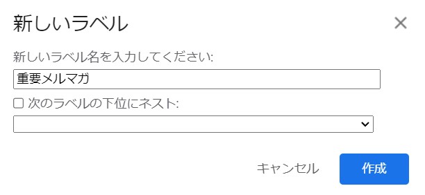 「新しいラベル」をクリックすると、フォルダ名を自分で設定できます。